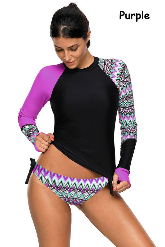 Geometric Long Sleeve Tankini Swimsuit | 2 Colors |
