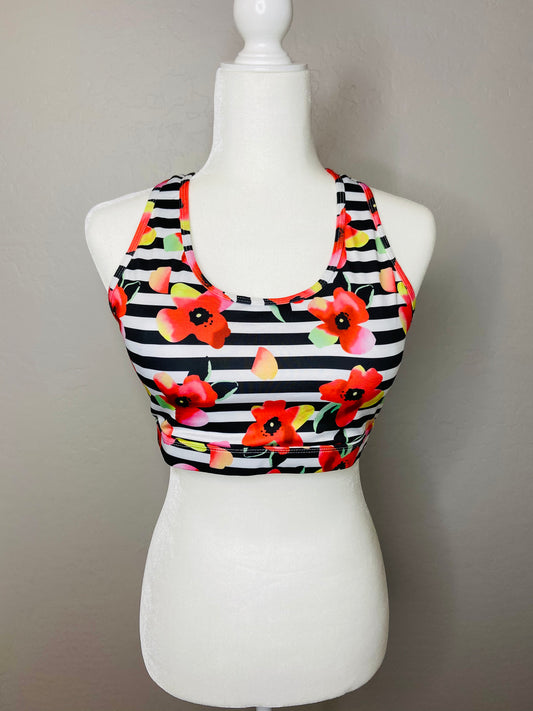 Black Striped Mesh Knotted Hem Tankini Swimsuit