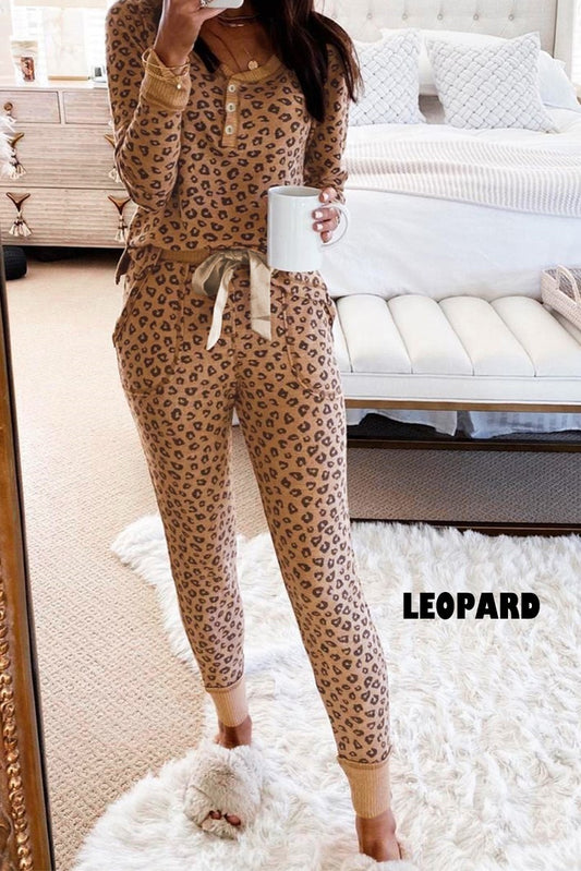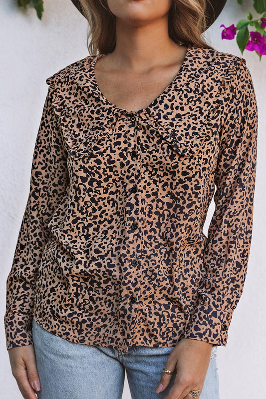 Leopard Buttoned Up Long Sleeve Blouse
