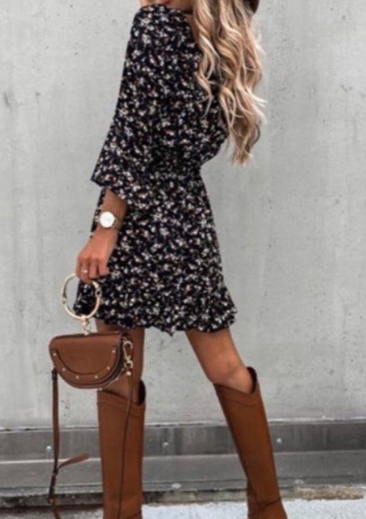 Smocked Waist Ruffled Long Sleeve Mini Dress
