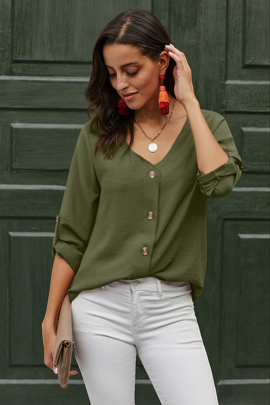 V Neck Long Puff Sleeve Top | 2 Colors |