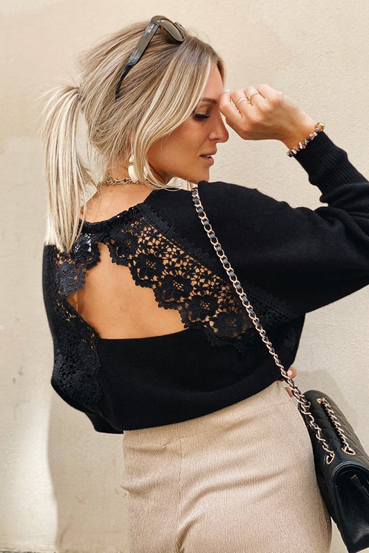 V Neck Lace Trim 3/4 Sleeve Blouse