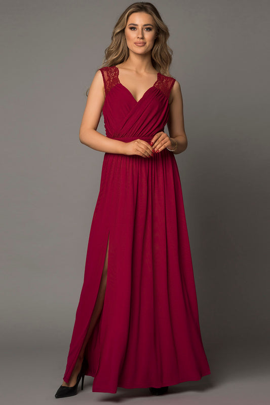 Red Fill Your Heart Lace Empire Waist Maxi Dress