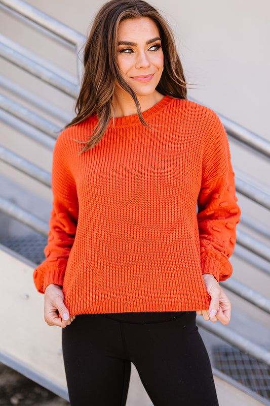 Beige V-neck Knitted Lantern Sleeve Pullover Sweater