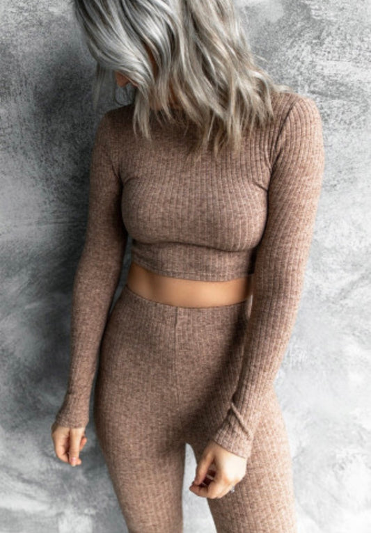Ribbed Knit Crop Top and Pants Two Piece Set