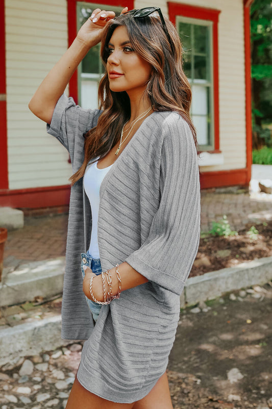 Pink Crew Neck Ribbed Trim Waffle Knit Top