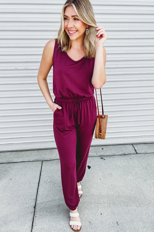 Elastic Waist Sleeveless Jumpsuit with Long Cardigan
