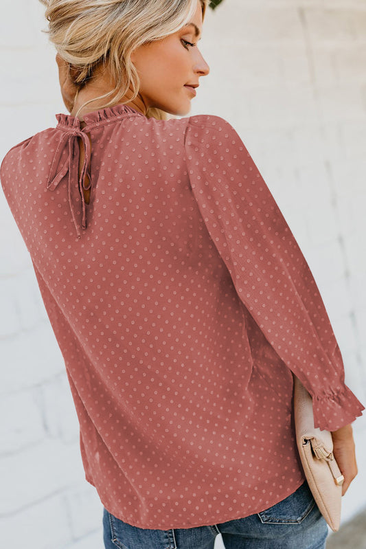 Swiss Dot Smocked Frilled Neckline Long Sleeve Blouse | 3 Colors |