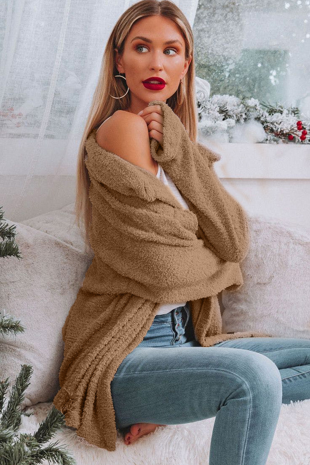 - Make a chic statement with our Fuzzy Collared Button Up Cardigan
